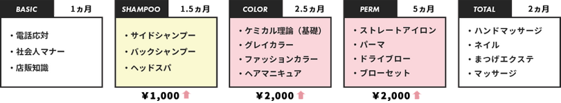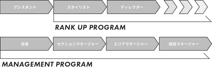 RANK UP PROGRAMスタイリストとしての成長を明確にランク評価いたします。